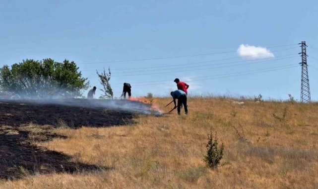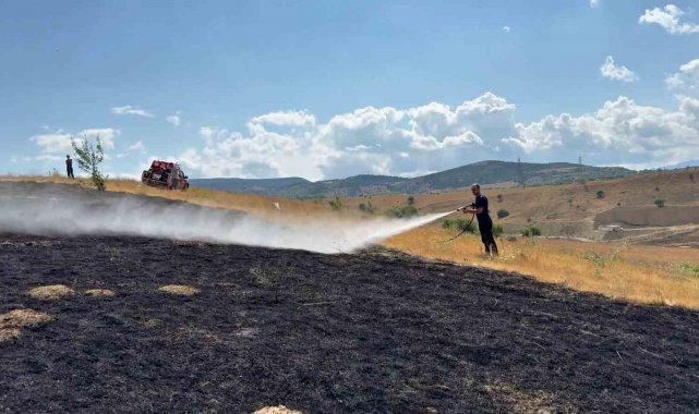 Karabük'te çıkan anız yangınında 2 dönüm alan zarar gördü.