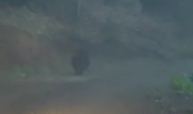 Başköy köyü istikametinde ilerleyen araçtakiler, yola çıkan iki ayıyla karşılaştı. Ayılar, aracın önünde bir süre koşarak kaçmaya çalıştı. Daha sonra yol kenarındaki yamaca tırmanan ayılar, karanlıkta gözden kayboldu.
