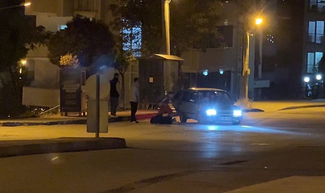 Kavgaya karışan kişilerin araçla kaçış anı, cep telefonu kamerasıyla görüntülendi.