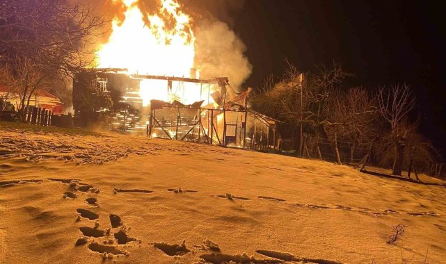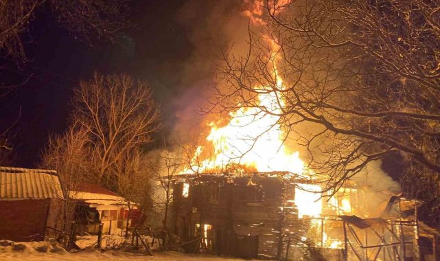 Karabük'ün Eflani ilçesinde çıkan yangında alevlere teslim olan iki katlı ev küle döndü.