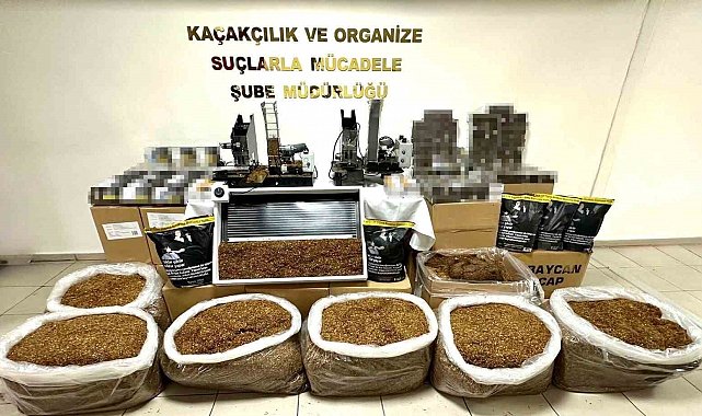 Yapılan aramalarda 170 kilogram açık kıyılmış tütün, 2 adet sanayi tipi sigara sarma makinesi, 1 adet tütün kurutma makinesi, 156 bin 400 adet boş makaron ve 4 bin 800 adet içi doldurulmuş makaron ele geçirildi.