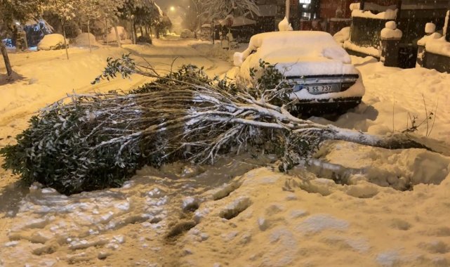 Karabük'te akşam saatlerinden itibaren kesintisiz bir şekilde devam eden kar yağışı hayatı olumsuz etkiliyor. Başta Sadri Artunç Caddesi üzerinde olmak üzere birçok noktadaki ağaçlarda hasar oluştu. Kar ağırlığıyla kırılan dallar bazı bölgelerde yaya ve araç trafiği için risk oluşturdu. Belediye ekipleri, olumsuzluk yaşanan noktalarda çalışma başlatarak kırılan dalları temizledi.