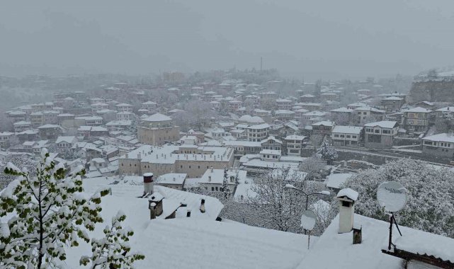 Karabük'te hafta sonu etkili olan kar yağışı sonrası Safranbolu'nun tarihi konakları beyaz örtüyle kaplandı.