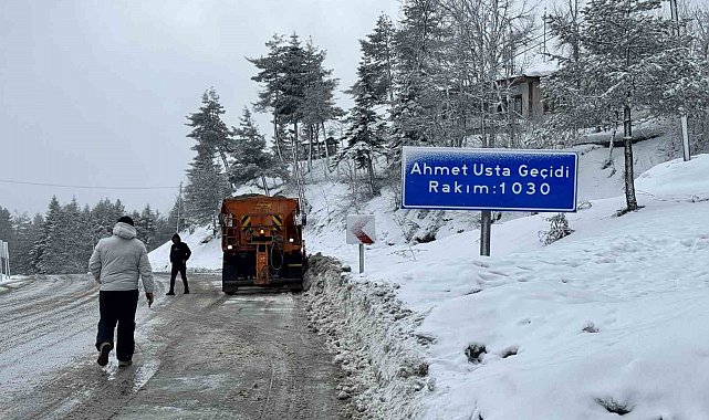 Bölgede kar küreme ve tuzlama çalışmaları gerçekleştirirken yolun belirli noktalarında kontroller de sürüyor.