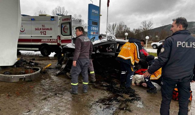 Karabük'te LPG istasyonuna çarpan otomobildeki 5 kişi yaralandı
