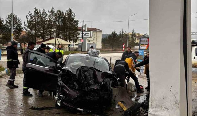 Kaza, Karabük-Eflani kara yolu Hükümet Caddesi üzerinde meydana geldi. Murat H. (26) idaresindeki 20 AKD 404 plakalı otomobil, sürücüsünün direksiyon hâkimiyetini kaybetmesi sonucu önce refüje, ardından yol kenarında bulunan LPG istasyonundaki kolona çarptı.