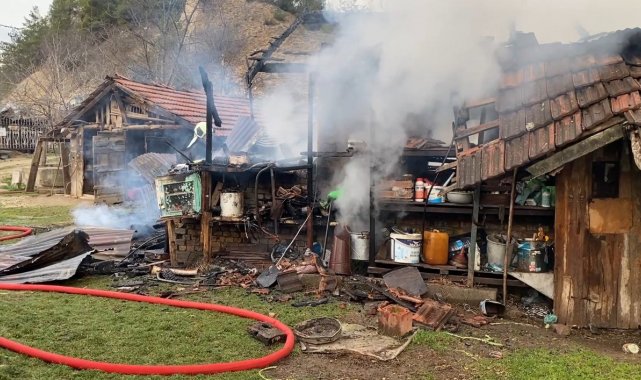 Karabük'te müştemilat yangını: 2 köpek yavrusu telef oldu