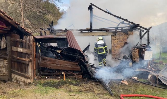 Karabük'te çıkan yangında alevlere teslim olan müştemilat kullanılamaz hale gelirken, 2 köpek yavrusu telef oldu.