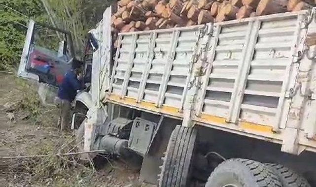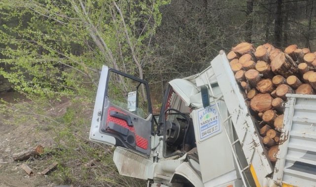 Karabük'te odun yüklü tır devrildi: 2 yaralı