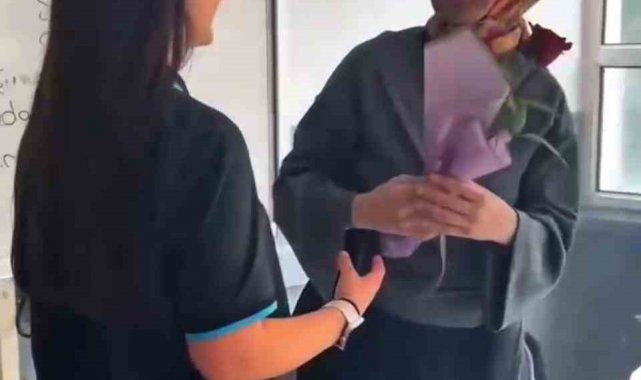 Karabük'te Kıymet ve Mustafa Yazıcı Anadolu Lisesi 10/B sınıfı öğrencileri, son günlerde okullara yönelik yaşanan üzücü olaylara kayıtsız kalmayarak anlamlı bir etkinliğe imza attı. Öğrenciler, öğretmenlerine moral vermek amacıyla sınıfça bir araya gelerek çiçek aldı. Hazırlıklarını gizlilik içinde sürdüren öğrencilerin sürprizi, öğretmenleri duygulandırırken yüzlerde tebessüm oluşturdu. Gerçekleştirilen etkinlik öğrenciler tarafından video haline getirilerek kayıt altına alındı. Okulun sosyal medya hesabında paylaşılan görüntüler kısa sürede beğeni topladı.