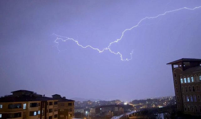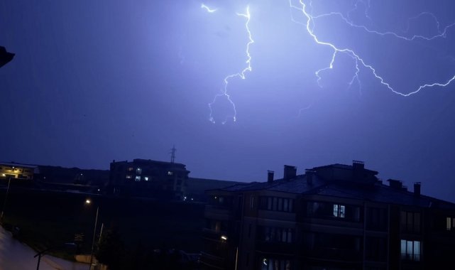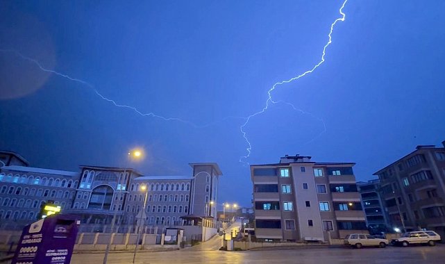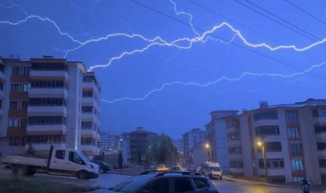 Karabük'te gece saatlerinde başlayan gök gürültülü sağanak yağmur, öncesinde oluşan şimşekler kentin üzerinde adeta görsel şölen oluşturdu.