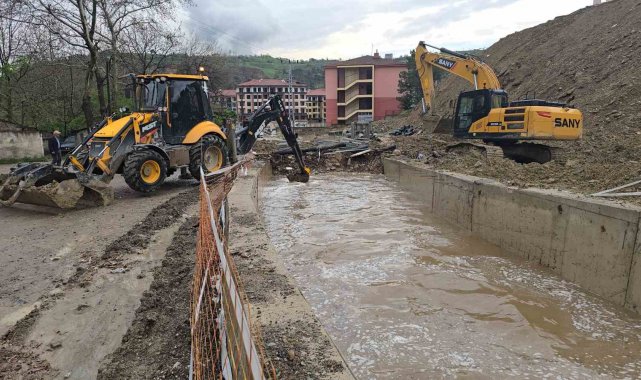 Karabük'te dün geceden beri etkili olan ve metrekareye düşen 20 kilogram yağış sonrası bazı dereler taşarken, belediye ekipleri kanallarda temizlik çalışması yaptı.