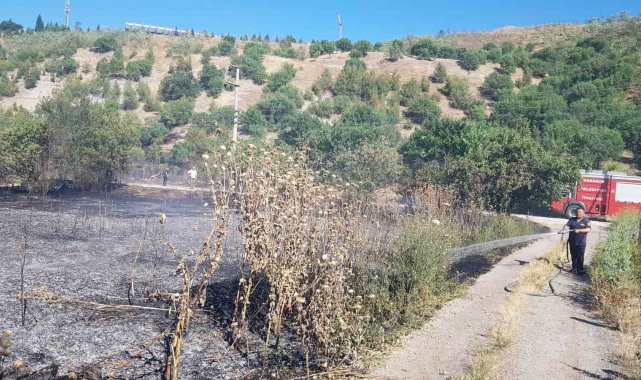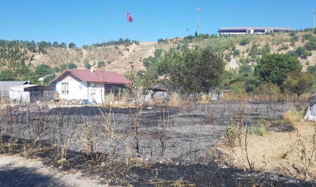 Karabük'te seraların bulunduğu bölgede çıkan anız yangınında yaklaşık 6 dönüm alan zarar gördü.