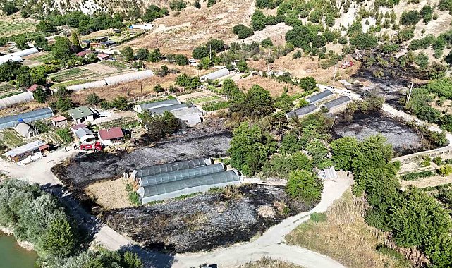 Bölgede soğutma çalışmaları devam ederken, yangın sonrası zarar gören alan yaklaşık 6 dönüm alan dron ile görüntülendi.