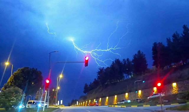 Karabük'te gece saatlerinde başlayan gök gürültülü sağanak yağmur öncesinde oluşan şimşekler kentin üzerinde adeta görsel şölen oluşturdu. O anlar ise vatandaşlar tarafından cep telefonlarıyla ve araç kameralarıyla görüntülendi.
