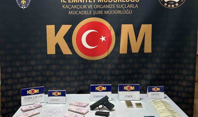 Şüphelilerin üzerlerinde ve adreslerinde yapılan aramalarda ruhsatsız GLOCK GEN-5 ibareli bir tabanca, 96 adet tabanca fişeği, toplam 2 milyon 250 bin TL karşılığı 5 senet, suç geliri olduğu değerlendirilen 44 bin TL, müştekilere ait kredi kartları ve alınan-verilen ödemelere ilişkin notların yer aldığı bir ajanda ele geçirildi.