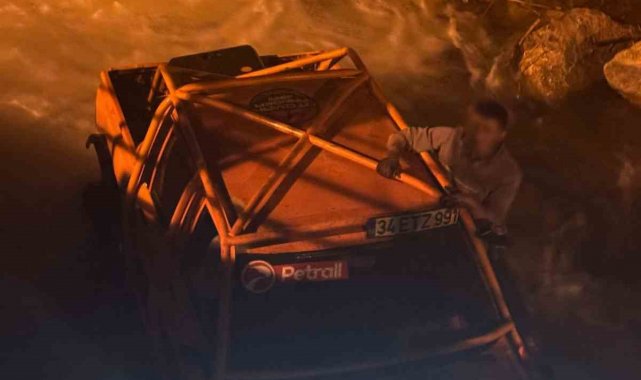 Bir diğer tehlikeli görüntü ise Eskipazar ilçesinden geldi. Şelale bölgesine cipleriyle giren gençler, suyun içinde ilerlemek isterken araçlarından biri mahsur kaldı. Zor anlar yaşayan gençlerin yardımına diğer araçtakiler yetişti. Mahsur kalan cip, halat yardımıyla çekilerek bulunduğu yerden çıkarıldı.