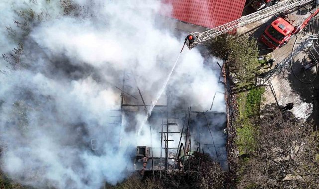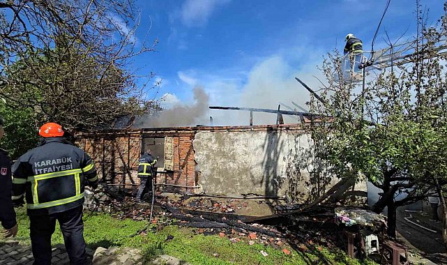 Karabük'te henüz nedeni belirlenemeyen bir şekilde çıkan yangından tek katlı bir ev alevlere teslim oldu.