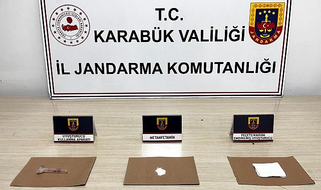 Edinilen bilgiye göre, Karabük İl Jandarma Komutanlığı ekipleri tarafından il merkezinde bir şahsın üzerinde ve eşyalarında yapılan aramada 2 gram metamfetamin, farklı ebatlarda uyuşturucu madde emdirilmiş peçeteler ve 1 adet uyuşturucu kullanma aparatı ele geçirildi. Gözaltına alınan şüpheli, işlemlerin tamamlanmasının ardından adli makamlara sevk edildi.
