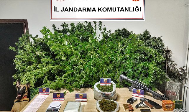 Edinilen bilgiye göre, jandarma ekipleri tarafından 3 şüphelinin bulunduğu bir çiftlikte ve çiftliğin bitişiğindeki ormanlık alanda yapılan, narkotik köpeği Eklem'in de katıldığı aramada, 56 kök skunk bitkisi, 4,63 gram kubar esrar, 2 gram kenevir tohumu, 1 vakum makinası, 119 vakum ambalaj poşeti, 1 hassas terazi, 13 eldiven, 1 ruhsatsız tabanca ve buna ait şarjör, 107 adet tabanca fişeği, 1 ruhsatsız av tüfeği, 3 av tüfeği şarjörü, 39 av tüfeği kartuşu ve suçtan elde edildiği değerlendirilen 27 bin 670 TL nakit para ele geçirildi. Ayrıca 3 cep telefonuna da incelenmek üzere el konuldu.