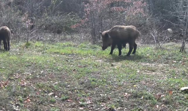 Görüntülerde, domuz sürülerinin arazide dolaştığı, vaşak ile tavşanın ise yiyecek aradığı anlar kaydedildi.
