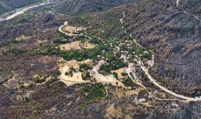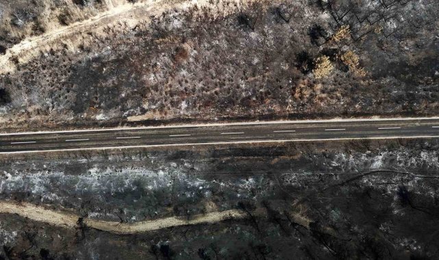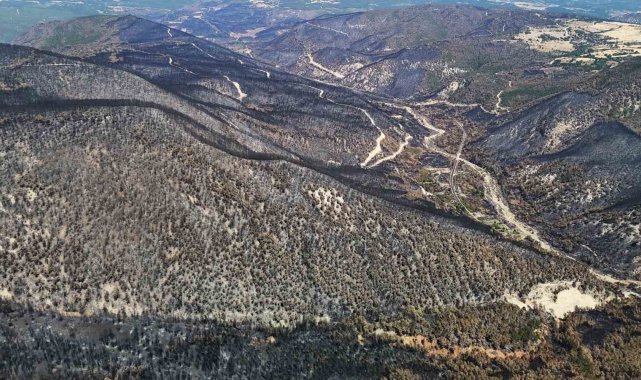 Karabük'te etkili olan orman yangınlarının ardından alevlerin hakim olduğu bölgelerde yeşilin yerini sarı ve kahverengi tonlar aldı. Yangının izleri, havadan görüntülendi.