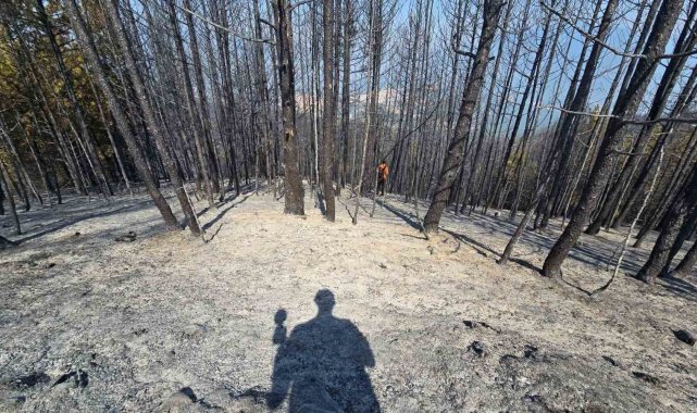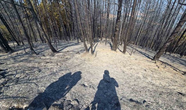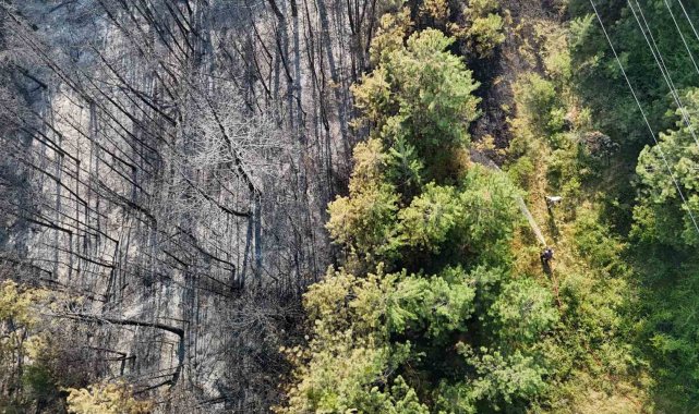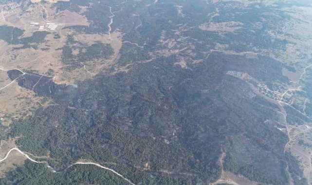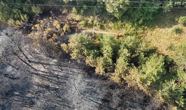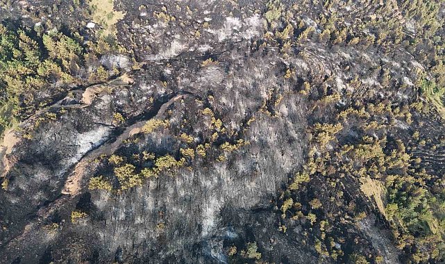 Yangının kontrol altına alınmasının ardından bölgede soğutma çalışmaları sürdürülürken yangında zarar gören alanlar dronla görüntülendi.