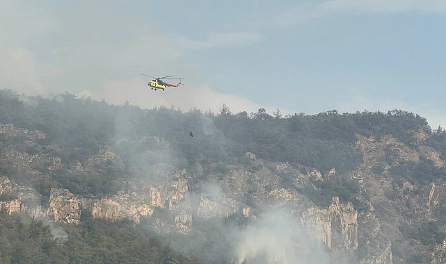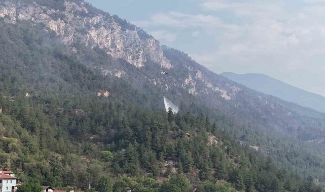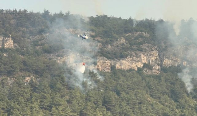 Orman Genel Müdürlüğü koordinesindeki ekipler, helikopterler, arazözler ve iş makineleriyle yangının enerjisini düşürdü.