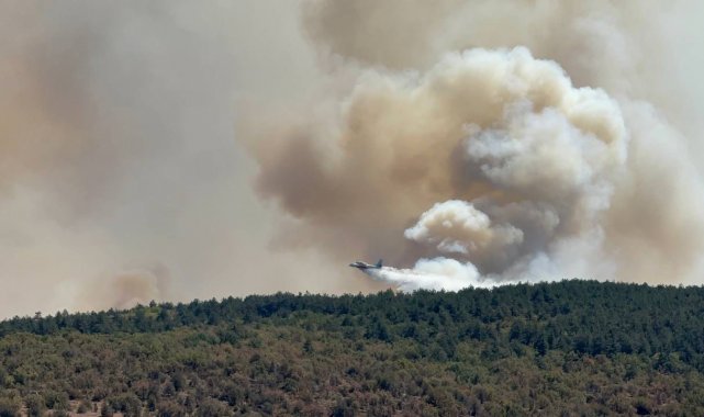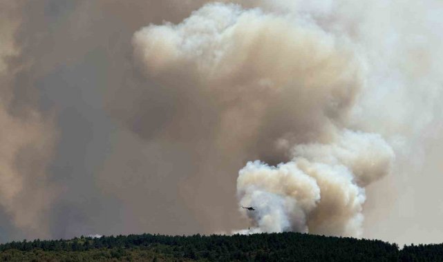 Saraycık köyünde enerjisi düşen yangın rüzgarın etkisiyle Çatalçam mevkiine sıçradı. Yangına çok sayıda yangın söndürme helikopter ve uçak havadan müdahale ediyor.