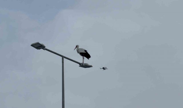Karabük'ün simgesi haline gelen leylek dronla görüntülendi