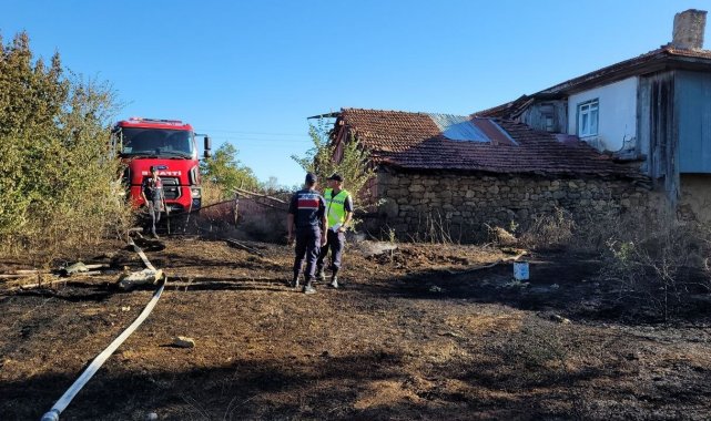 Karabük'ün Eflani ilçesinde evin arka kısmına dökülen külden çıkan yangında 3 dönümlük otluk alan zarar gördü.