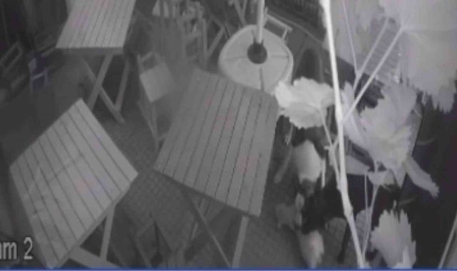 Olay, Celal Bayar Caddesi üzerinde ki bir evin bahçesinde meydana geldi. Yaklaşık 3 hafta önce doğum yapan anne kedi, bahçeye gelen iki sokak köpeğinin saldırısına uğrayarak telef oldu. O anlar güvenlik kamerasına anbean yansıdı. Görüntülerde köpeklerin bahçeye gelip, kediye saldırdığı ve 1 dakika boyunca ısırdıkları kediyi telef ettikleri görüldü.