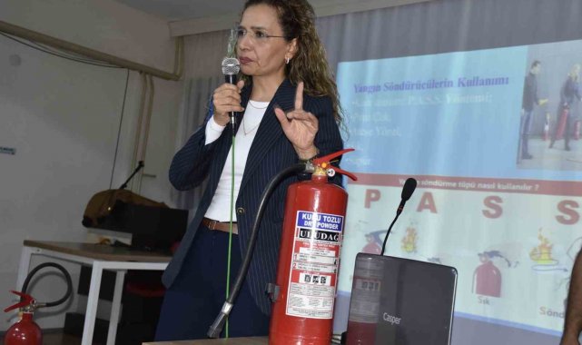 Belediye Afet İşleri Müdürlüğü'nde görevli Jeofizik Mühendisi Seval Aydın tarafından verilen eğitimde, yangın anında yapılması gereken doğru davranış biçimleri, ilk müdahale yöntemleri ve güvenli tahliye süreçleri detaylı şekilde anlatıldı. Ayrıca öğrenciler, yangın söndürme ekipmanlarının tanıtımı ve doğru kullanımına dair uygulamalı bilgilerle bilinçlendirildi.
