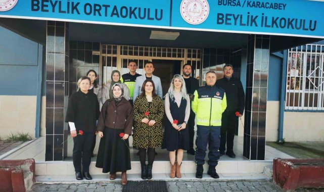 Karacabey İlçe Jandarma Komutanlığı'na bağlı trafik jandarması ekipleri, 24 Kasım Öğretmenler Günü dolayısıyla anlamlı ve bir o kadar da değerli bir etkinliğe imza attı. İlçedeki dört okulu ziyaret ederek öğretmenlere karanfil dağıttı.