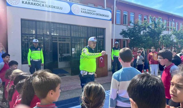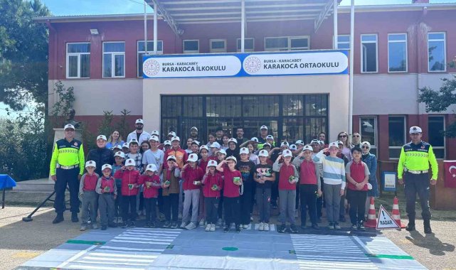 Bursa'nın Karacabey ilçesindeki Karakoca İlköğretim Okulu'nda, Trafik Haftası kapsamında çocuklara güvenli trafik eğitimi verildi.