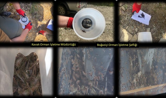 Ormanlık alanlarda çam ağaçlarının kabuklarını yiyerek kurutan 12 dişli kabuk böceğine (Ips sexdentatus) karşı başlatılan çalışma, Kavak Orman İşletme Müdürlüğü Boğaziçi Şefliği koordinesinde yürütülüyor. Karaçam ormanlarında çok sayıda noktaya feromon tuzakları yerleştirilerek zararlının popülasyonunun azaltılması hedefleniyor.