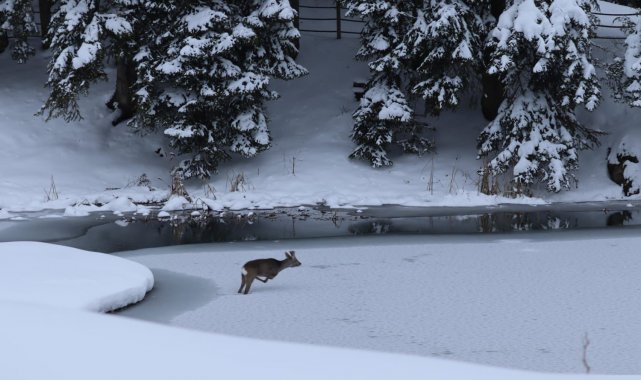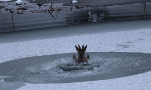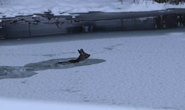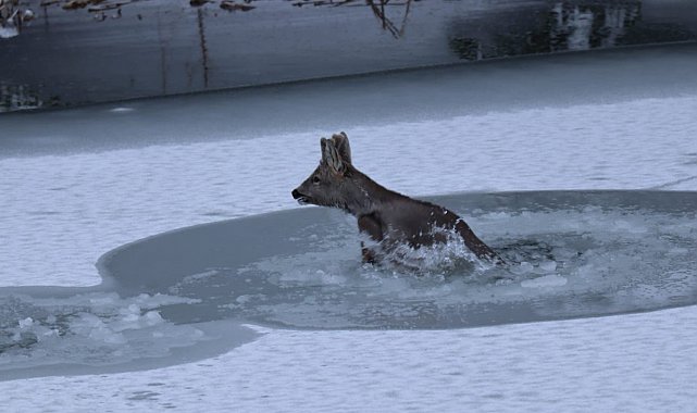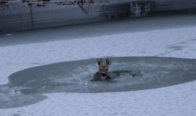 Sinop'un en önemli doğa güzelliklerinin arasında yer alan Ayancık Akgöl'de buz tutan gölden karşıya geçmeye çalışan karaca, buzun kırılmasıyla buz gibi suya düştü. Orada bulunan vatandaşlar yardım etmeye çalıştı ancak zorlu şartlar buna izin vermedi. Karaca, kendi imkanlarıyla gölün karşısına geçmeyi başardı. Fotoğraflanan bu anlar, karacanın hayatta kalma azmini gözler önüne serdi.