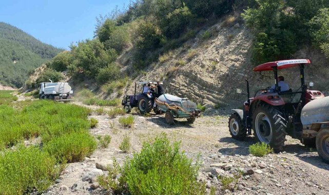 Osmaniye'de Karacaören Gölet'ine, köylüler ve belediye ekipleri gölette bulunan pullu sazanların oksijen sirkülasyonunu sağlamak ve muhtemel orman yangınlarında helikopterlerin su ikmalini kolaylaştırmak amacıyla su tankerleriyle su takviyesi yaptı.
