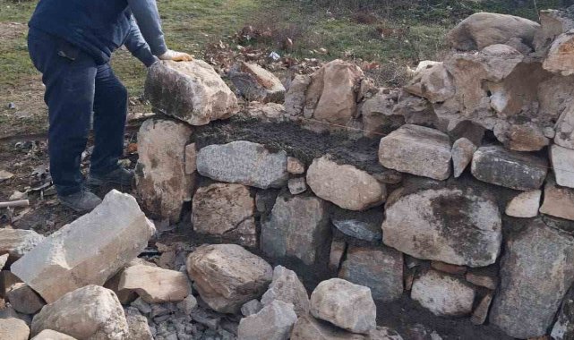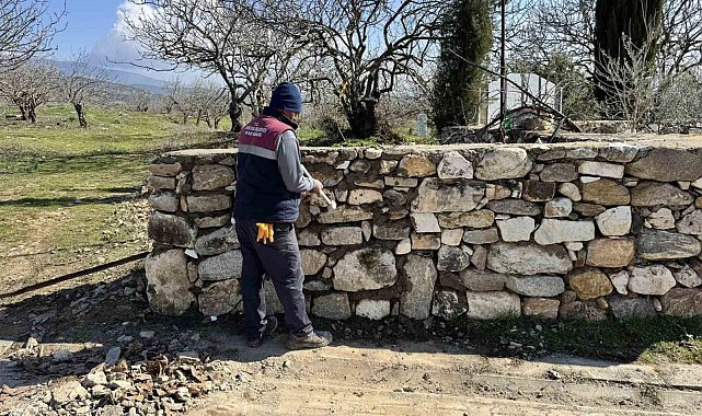 Aydın'ın Karacasu ilçesinde mezarlığın yıkılan duvarı, belediye ekiplerince yeniden örülerek onarıldı.
