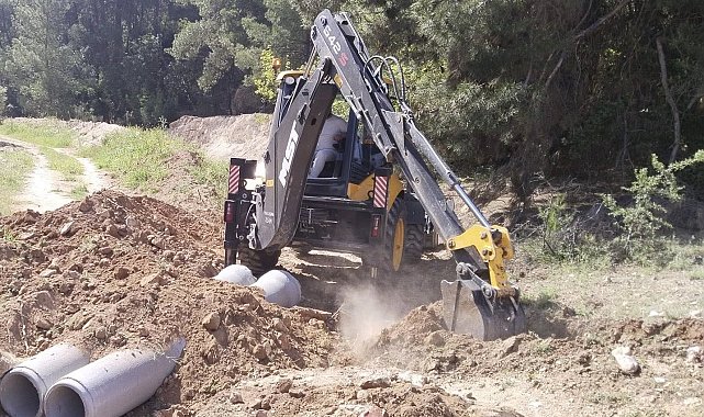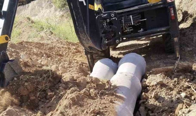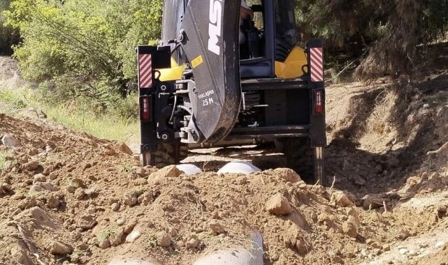Aydın'ın Karacasu ilçesinde yağmur suyu tahliyesini güçlendirmek amacıyla belediye ekiplerince beton büz döşeme çalışmaları gerçekleştiriliyor.