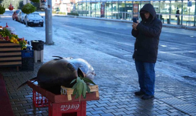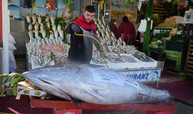 Hayatlarında ilk kez bu büyüklükte bir balık gördüklerini belirten vatandaşlar şaşkınlıklarını gizleyemedi. Kilogramı 400 TL'den satışa sunulan orkinosun parça parça satılacağı öğrenildi.