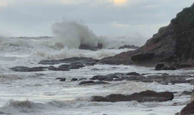 Bartın'ın sahil kentlerinde saatte hızı 90 kilometreye ulaşan fırtına nedeniyle denizde dev dalgalar oluştu. Kayaları adeta yutan dalgalar tusunamiyi andıran görüntüler ortaya çıkardı.
