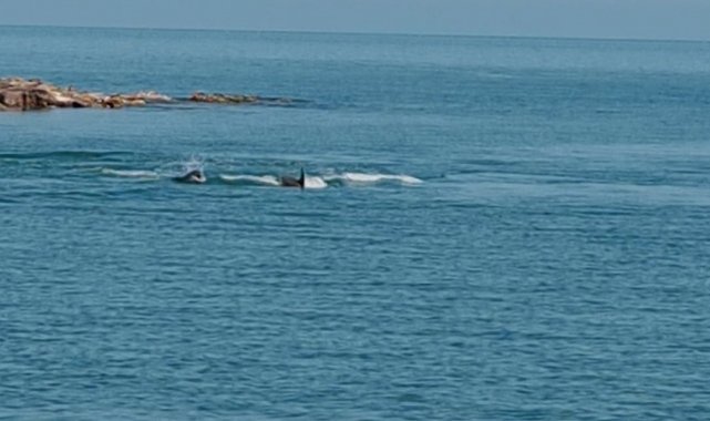 Yaklaşık 1 saat boyunca sahil yakınında kalan yunuslar, daha sonra geldikleri gibi aniden gözden kayboldu. O anlar vatandaşlar tarafından cep telefonlarıyla görüntülendi.