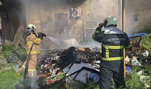 Zonguldak'ın Ereğli ilçesi Meydanbaşı Caddesi'nde bulunan metruk binanın arkasındaki alanda henüz belirlenemeyen bir sebeple yangın çıktı.