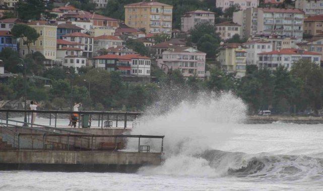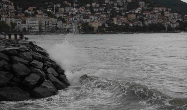 Ordu'da denizde etkili olan rüzgar nedeniyle kıyıya vuran dalgaların boyu 3-4 metreye ulaştı.