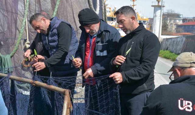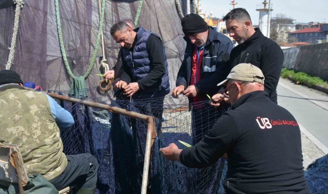 Karadenizli balıkçılar, sezonun bitişiyle beraber yıpranan ağlarını bakıma aldı.