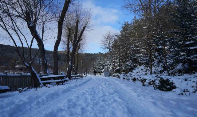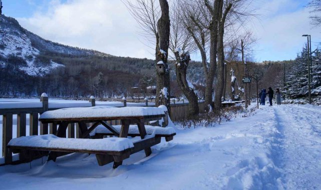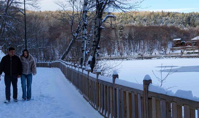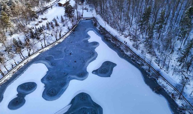 Karagöl Tabiat Parkı beyaza büründü, gölün yüzeyi buz tuttu
