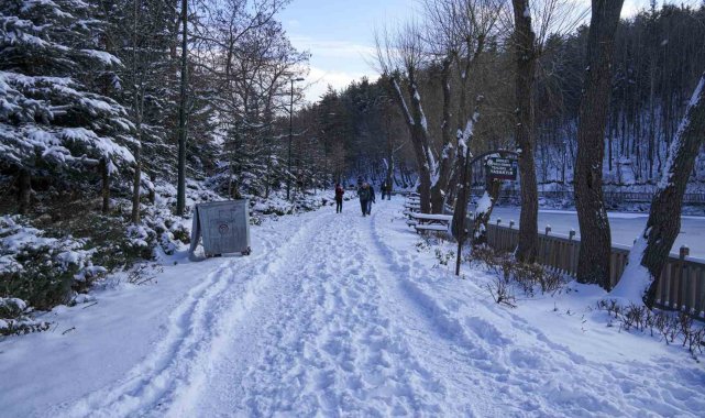 Ankara'nın Çubuk ilçesine yağan kar sonrası Karagöl Tabiat Parkı beyaza büründü.