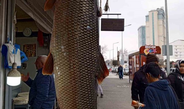 Malatya'da Karakaya Baraj Gölü'nde balıkçılar tarafından yakalanan 42 kilogram ağırlığındaki turna balığı tezgahta sergilendi. Dev balığı gören vatandaşlar tezgahın başında yoğunluk oluştururken, balıkçı Özcan Buluş turna balığının özellikle Mart ayında çıktığını ve yoğun ilgi gördüğünü söyledi.