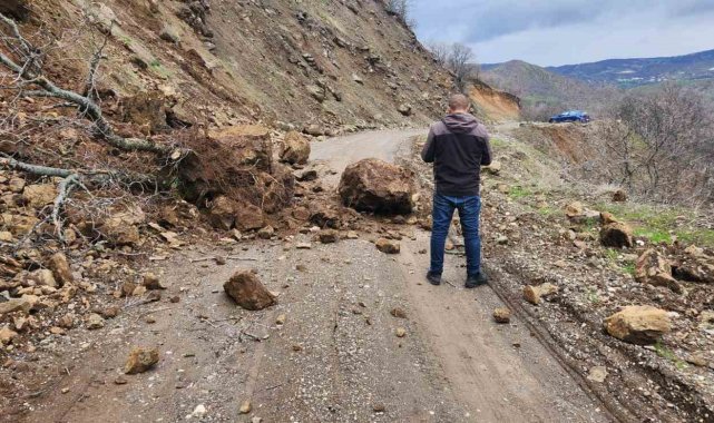Elazığ'ın Karakoçan ilçesine bağlı Korudibi köy yolunda toprak kayması meydana geldi.